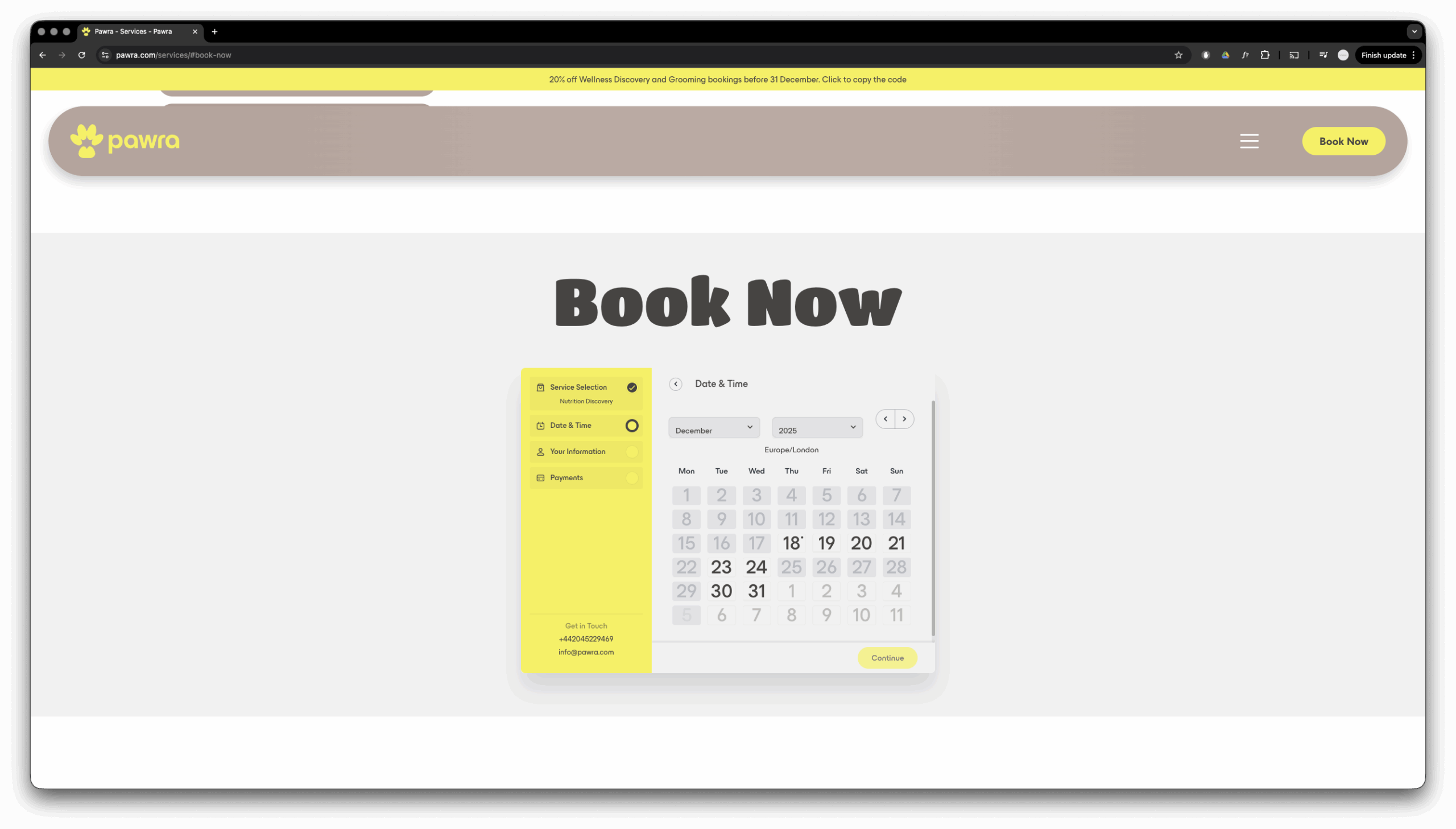 Closex Pawra Service booking website for dog wellness centre Pawra for Mars Inc featuring booking and management. Marketing Agency: Omnicom Group View Site