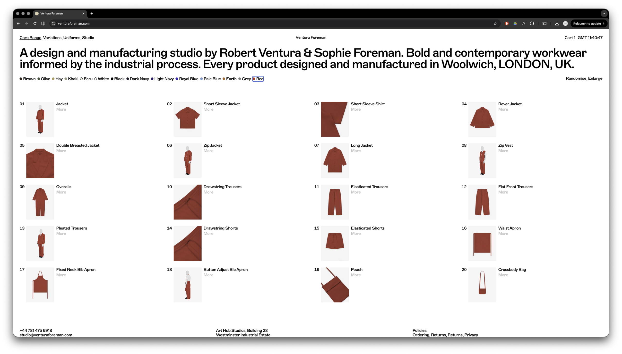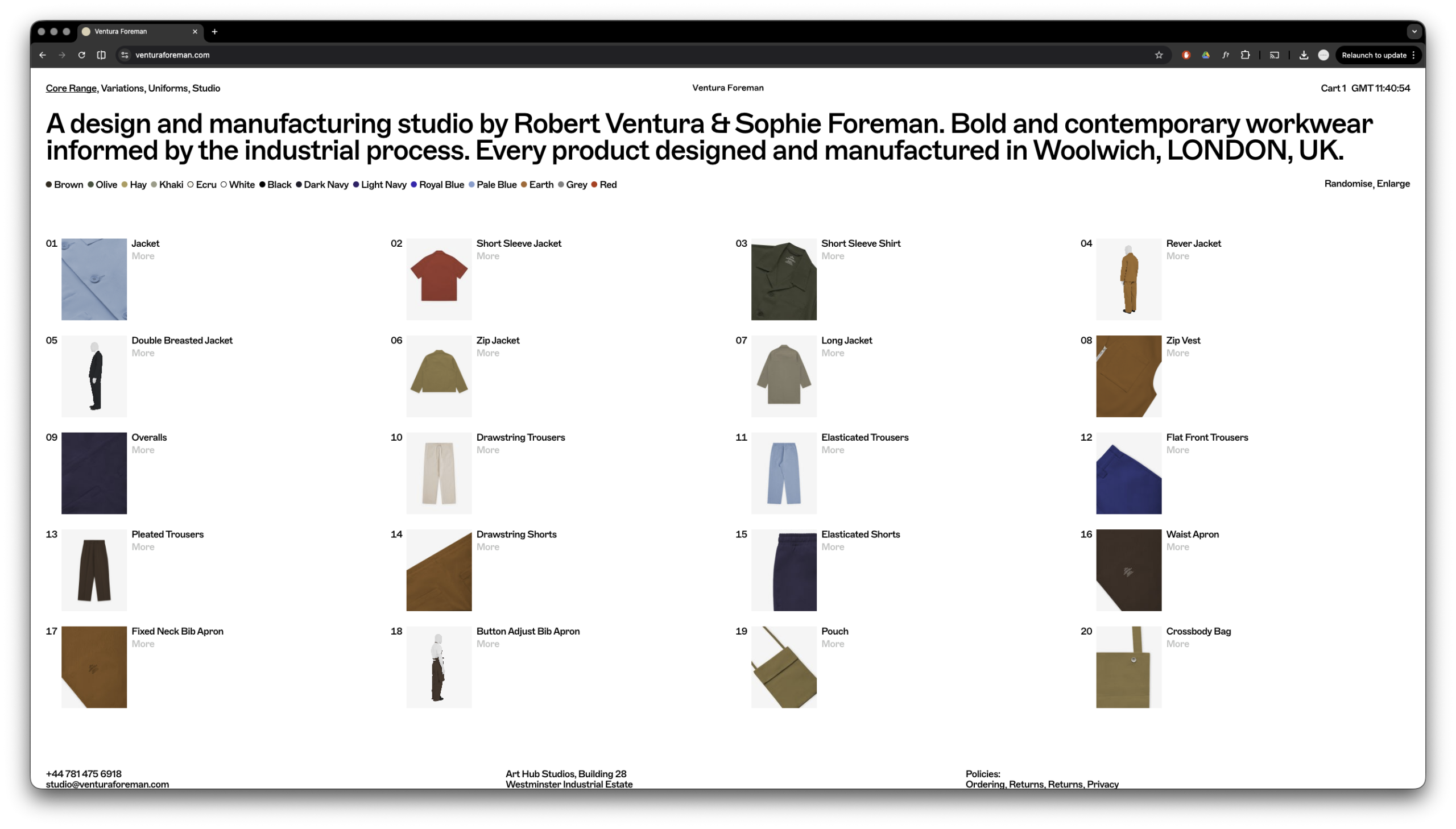 Closex Ventura Foreman E-Commerce site build for contemporary workwear designer & manufacturer Ventura Foreman Design Agency: Studio Blackburn Technologies: PHP, SCSS, JS, GSAP, Wordpress/ WooCommerce View Site